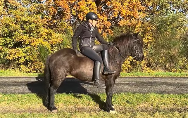 Die dunkelglänzende Rappstute mit dem kleinen Stern – fast schon einer zarten Blesse – ist einfach nur zuckersüß. Sie ist brav, fein geritten, erfahren und absolut verlässlich – ein Pferd, das dich nicht beeindrucken will, sondern begleitet. Blíða ist fünfgängig veranlagt, wird aber viergängig geritten. Sie verfügt über wunderschönen, natürlichen Tölt, ist weich zu sitzen und ruhig im Temperament.