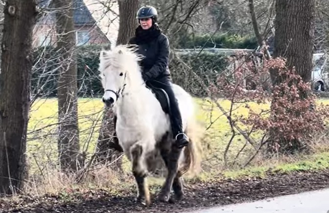Sie ist fünfgängig veranlagt, wird bei uns jedoch bewusst viergängig geritten. Ihr Tölt ist stets taktsicher, klar und frei von Pass- oder Trabeinflüssen – vom ruhigen Tempo bis ins gute Mitteltempo. Alle Gänge sind leicht abrufbar, gleichmäßig gut und angenehm zu sitzen. Trab und Galopp zeigen Schwung, Balance und eine aktive Hinterhand. Besonders bemerkenswert ist Sandras Wesen: Sie ist brav, regulierbar, aufmerksam und dabei immer motiviert.
