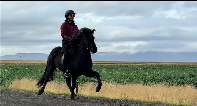 Noch jung und nicht weit ausgebildet, aber schon jetzt ein Pferd, das durch seine schicken Bewegungen und seinen tollen Charakter begeistert.