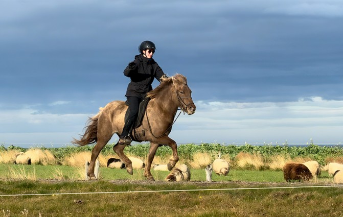 Finna ist eine erst 4-jährige Stute mit einem Stockmaß von ca. 1,40 m – sie wächst also noch. Sie ist ganz knapp angeritten (seit etwa einem Monat unter dem Sattel) und zeigt sich schon jetzt als ein absolutes Traum-Pferd: mega brav, cool im Kopf und wunderbar unkompliziert. An dem stürmischsten Herbsttag hier in Island 🌬️ hat sie gezeigt, wie unerschrocken und gelassen sie ist. Schritt, Trab und Galopp meistert sie bereits sehr schön – und genug Tölt bringt sie auch mit. Wer genau hinschaut, erkennt schon das lockere Tölt-Potenzial ✨.