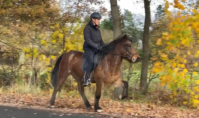 Gerade deshalb ist sie wunderbar geeignet für unsichere Reiter, Jugendliche sowie Reiterinnen, die ein junges Pferd weiter ausbilden möchten. Sie meistert Plane, Mülltonne, Laubhaken, Lärm und Verkehr sicher – nicht die allermutigste, aber gut überzeugbar und voller Vertrauen, sobald man ihr Zeit gibt. Im Gelände zeigt sie sich klar, brav und verlässlich: Autos, LKW, Kinderwagen, Kühe – alles machbar.